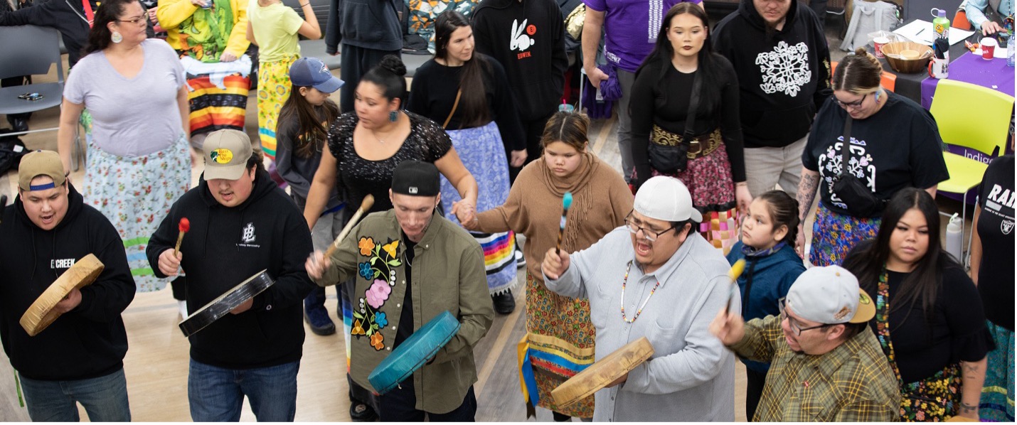 As some of you may already be aware, a Round Dance is a traditional Anishinaabe and Cree winter ceremony involving participants joining hands in a circle to dance, sing, and celebrate life, community, and the spirit of ancestors. Held during the colder months, these gatherings promote healing, remembrance, and unity through shared songs, stories, food, and drumming (which symbolizes the heartbeat of the community).